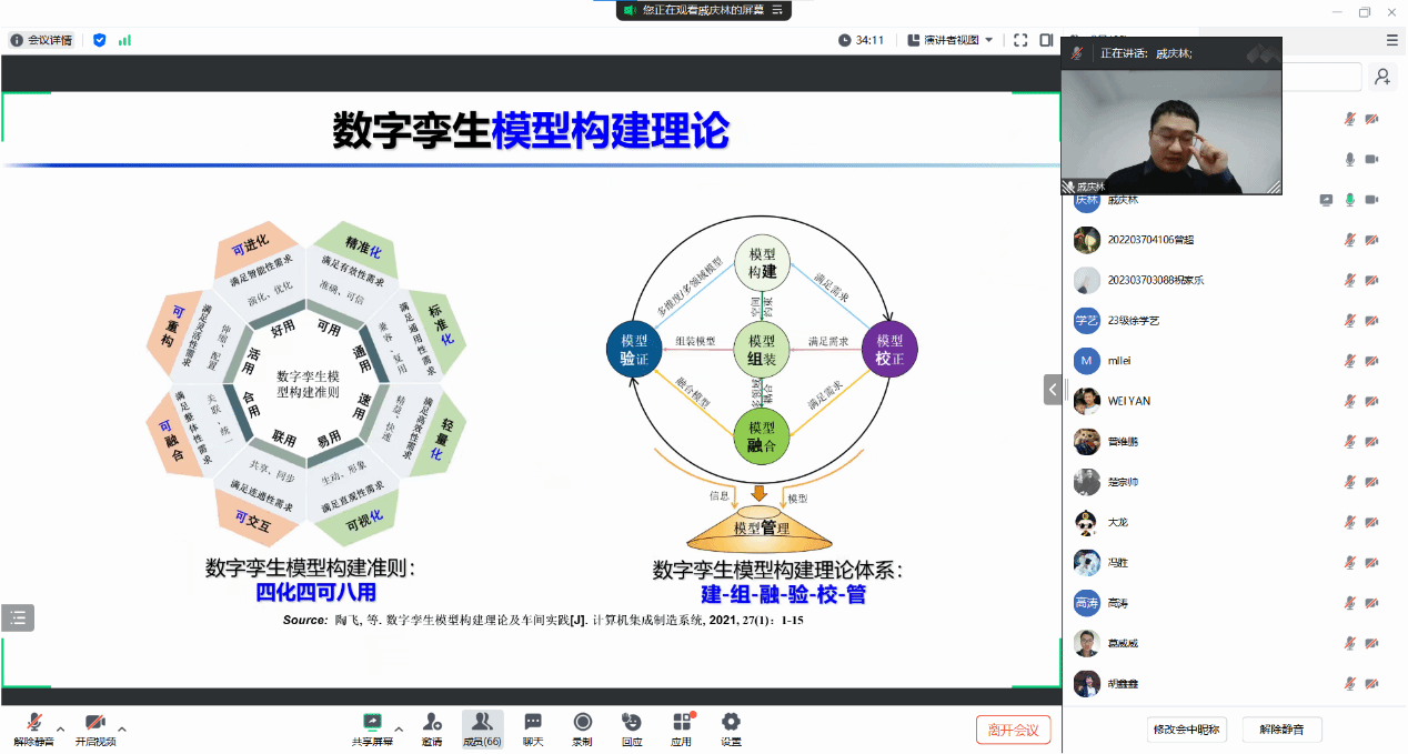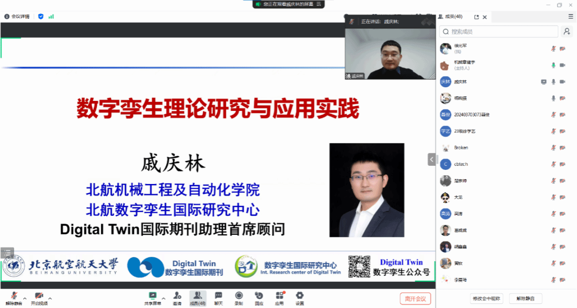 武科大网讯(通讯员 梁海权)为拓展数字孪生研究视野,一场题为《数字孪生的理论研究与应用实践》的报告于2024年12月4日在腾讯会议成功举行。本次报告由戚庆林教授主讲,由冶金装备及其控制教育部重点实验室与机械传动与制造工程湖北省重点实验室联合主办,吸引了众多师生参与。